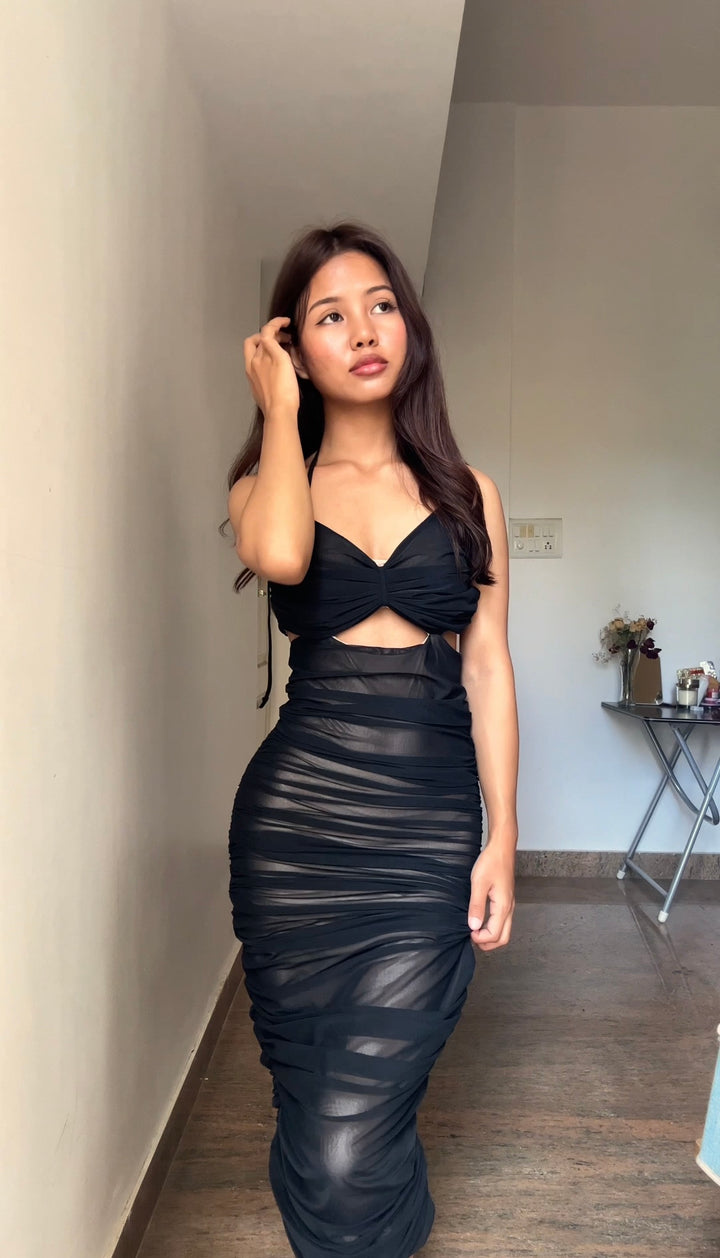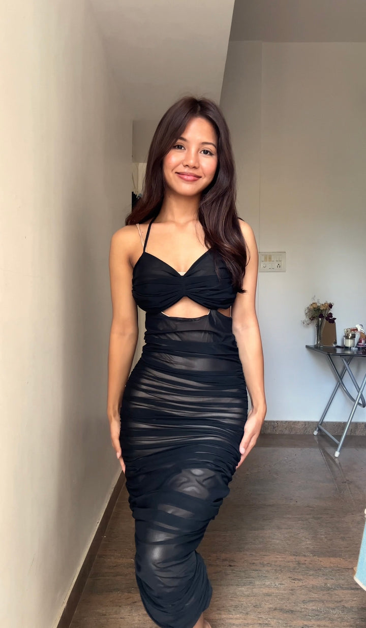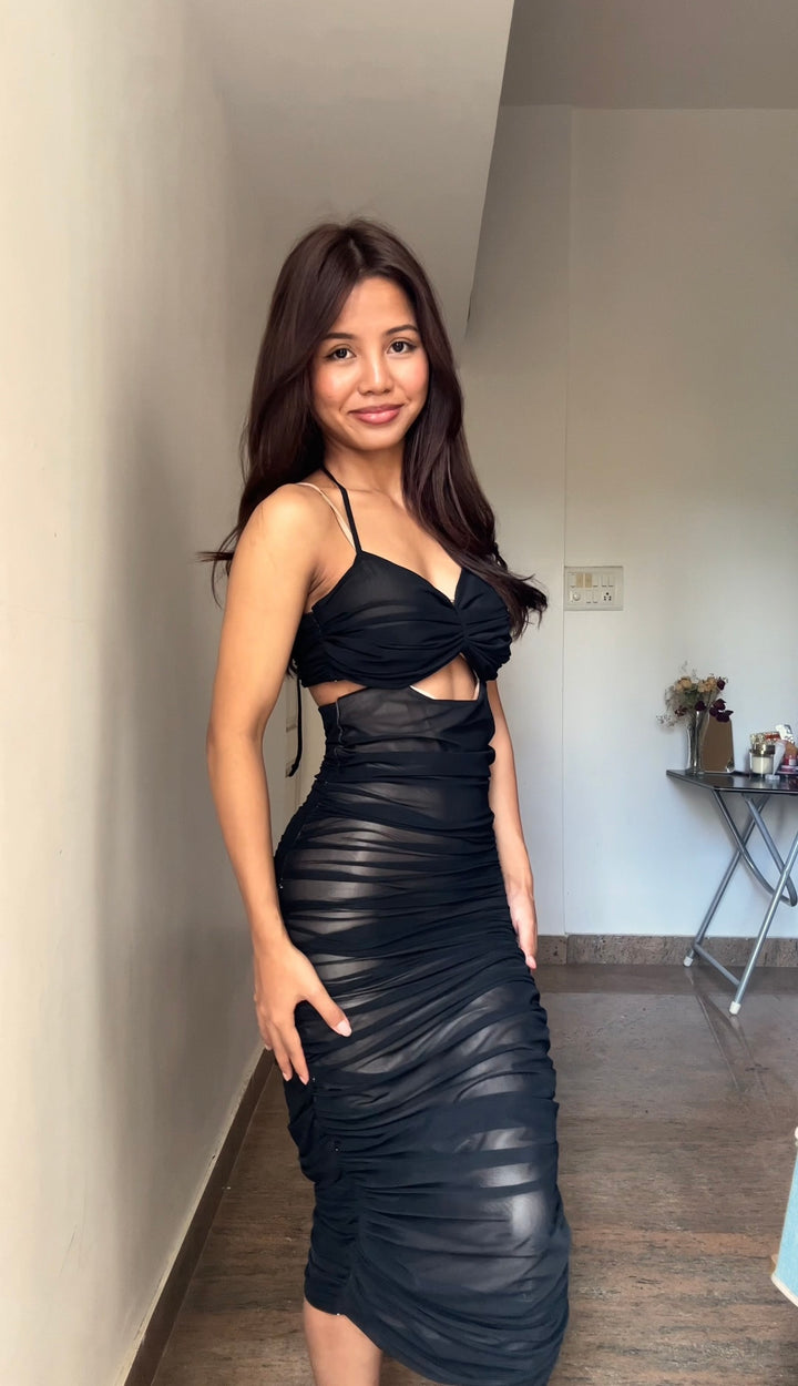 Black Ruched Midi Dress