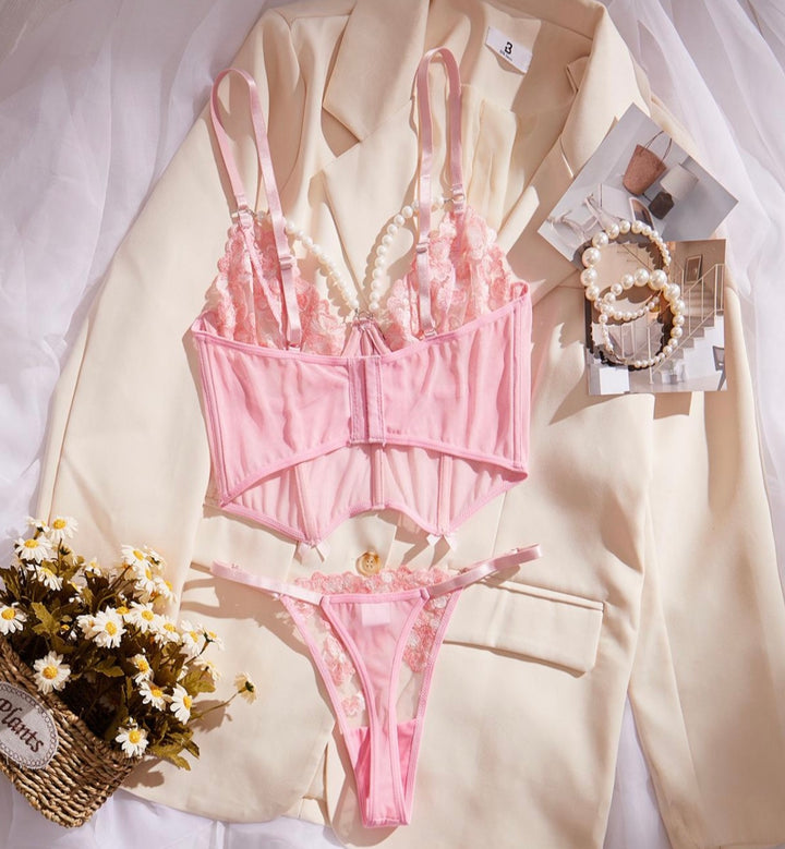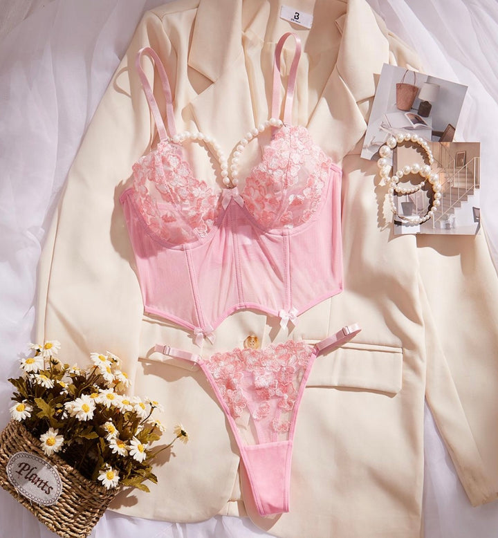• Underwired bra to subtly lift and shape with pearls detailing to enhance cleavage