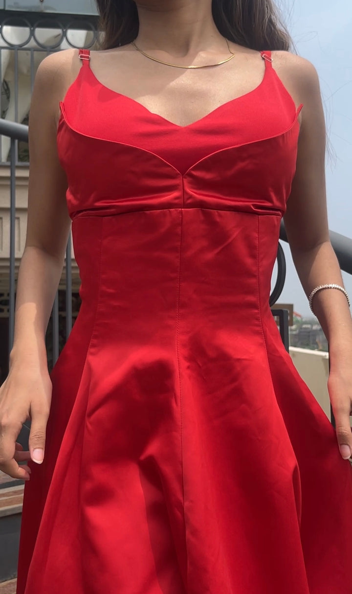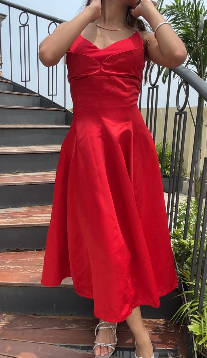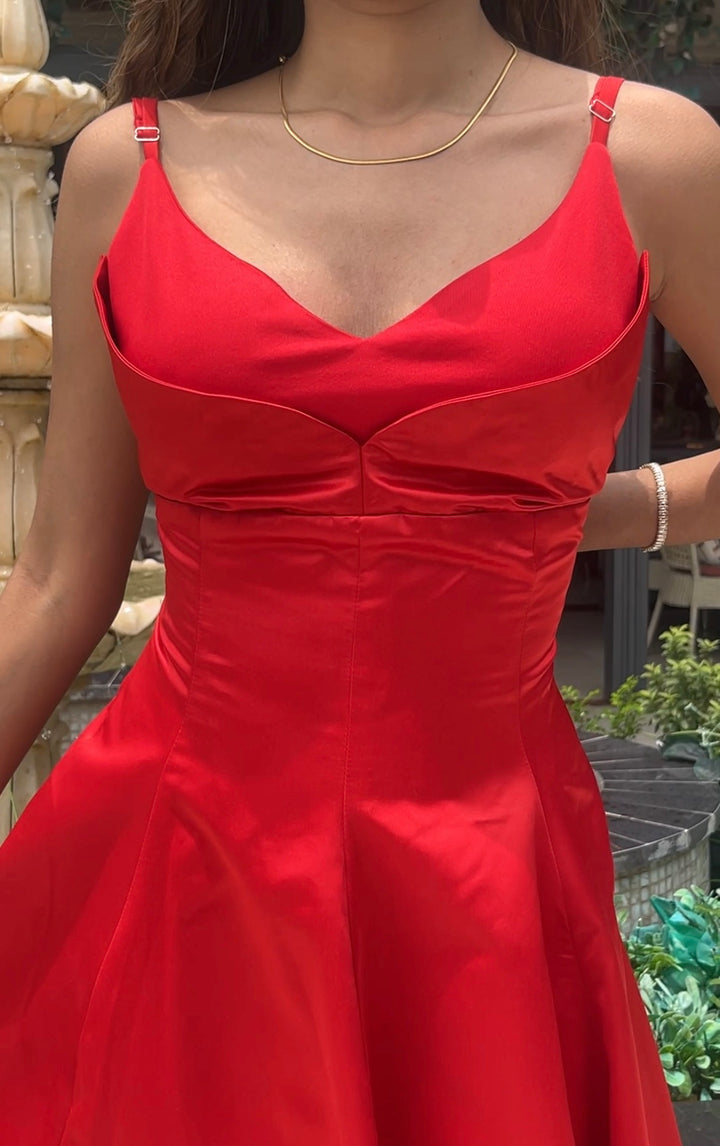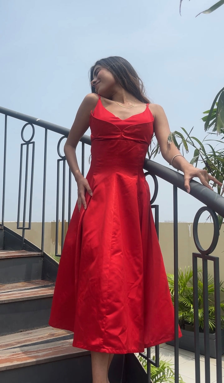 Swan Flare Dress In Red