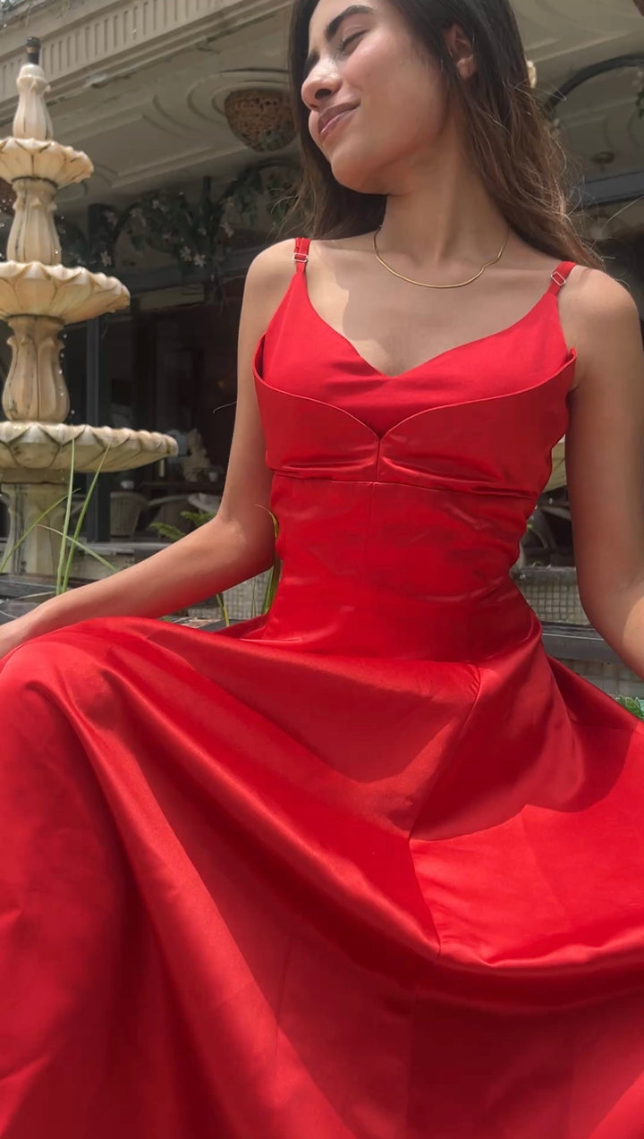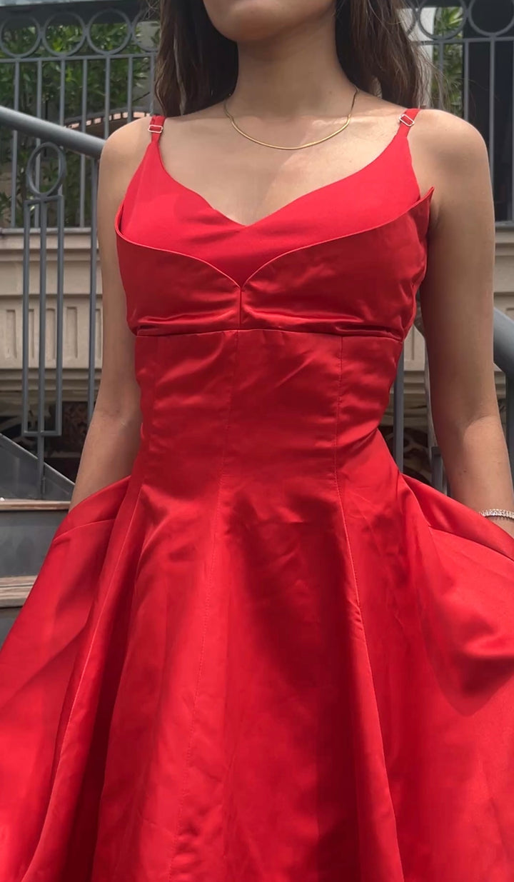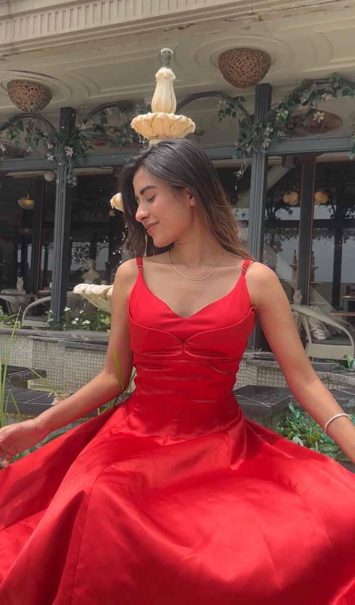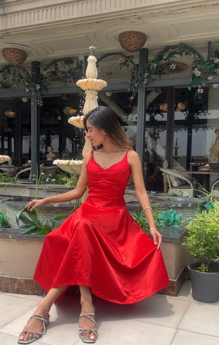 Swan Flare Dress In Red