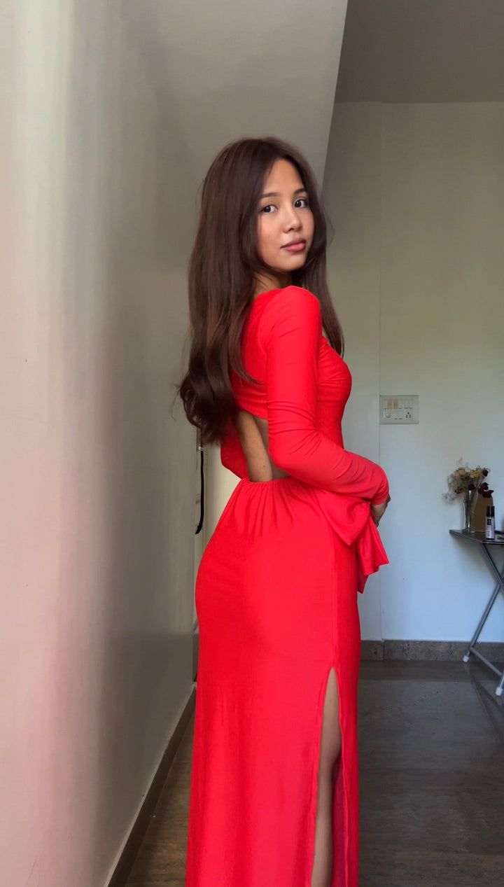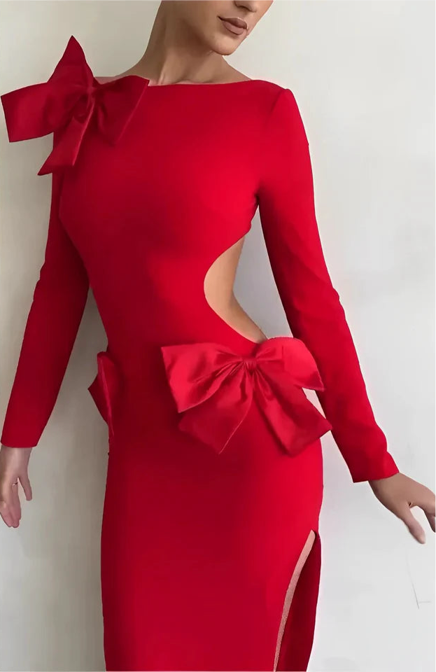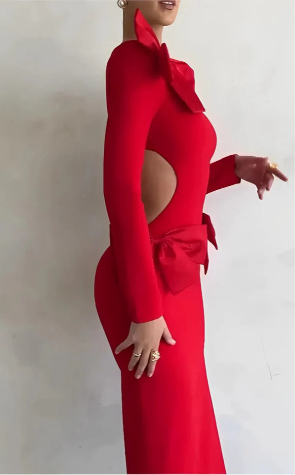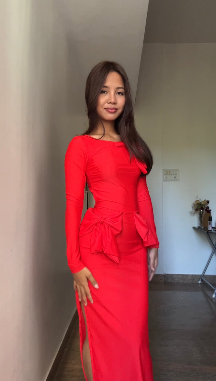 • A gorgeous red dress made with pretty bows